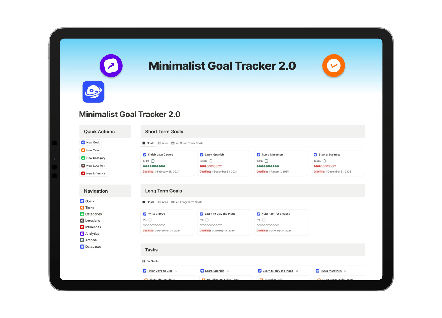 Stay organized, stay motivated, and achieve your goals with the Minimalistic Goal Tracker 2.0.