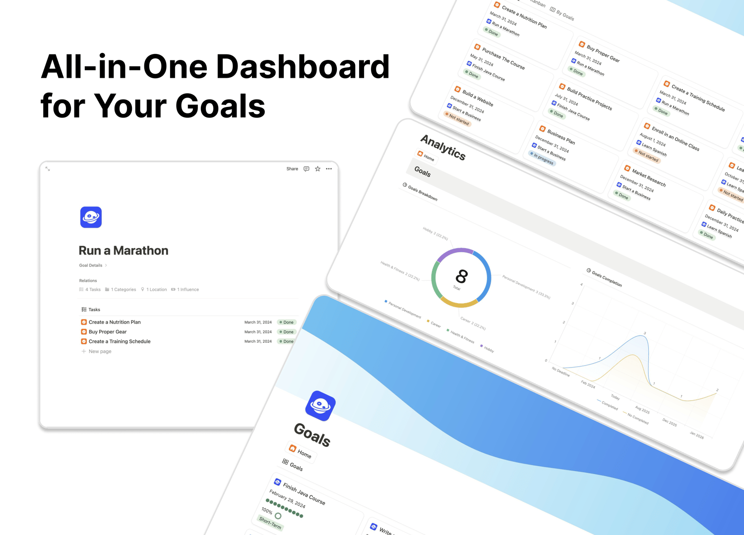 - All-in-One Dashboard: Centralized hub for all your goals, making management a breeze.